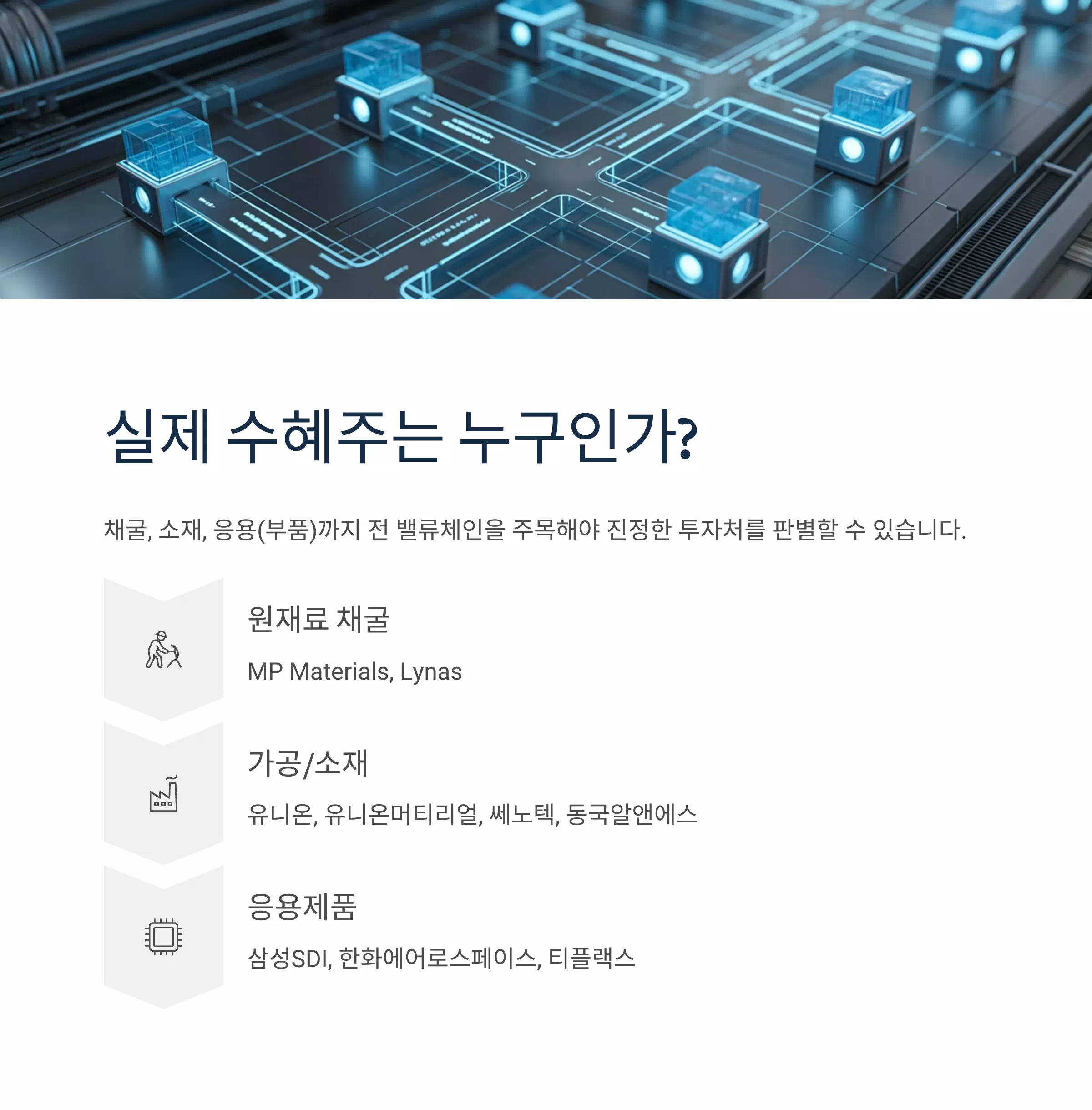 가공/자석·합금 제조사-전방부품/응용산업까지 동시에 주목해야 진정한 투자처를 판별할 수 있습니다.