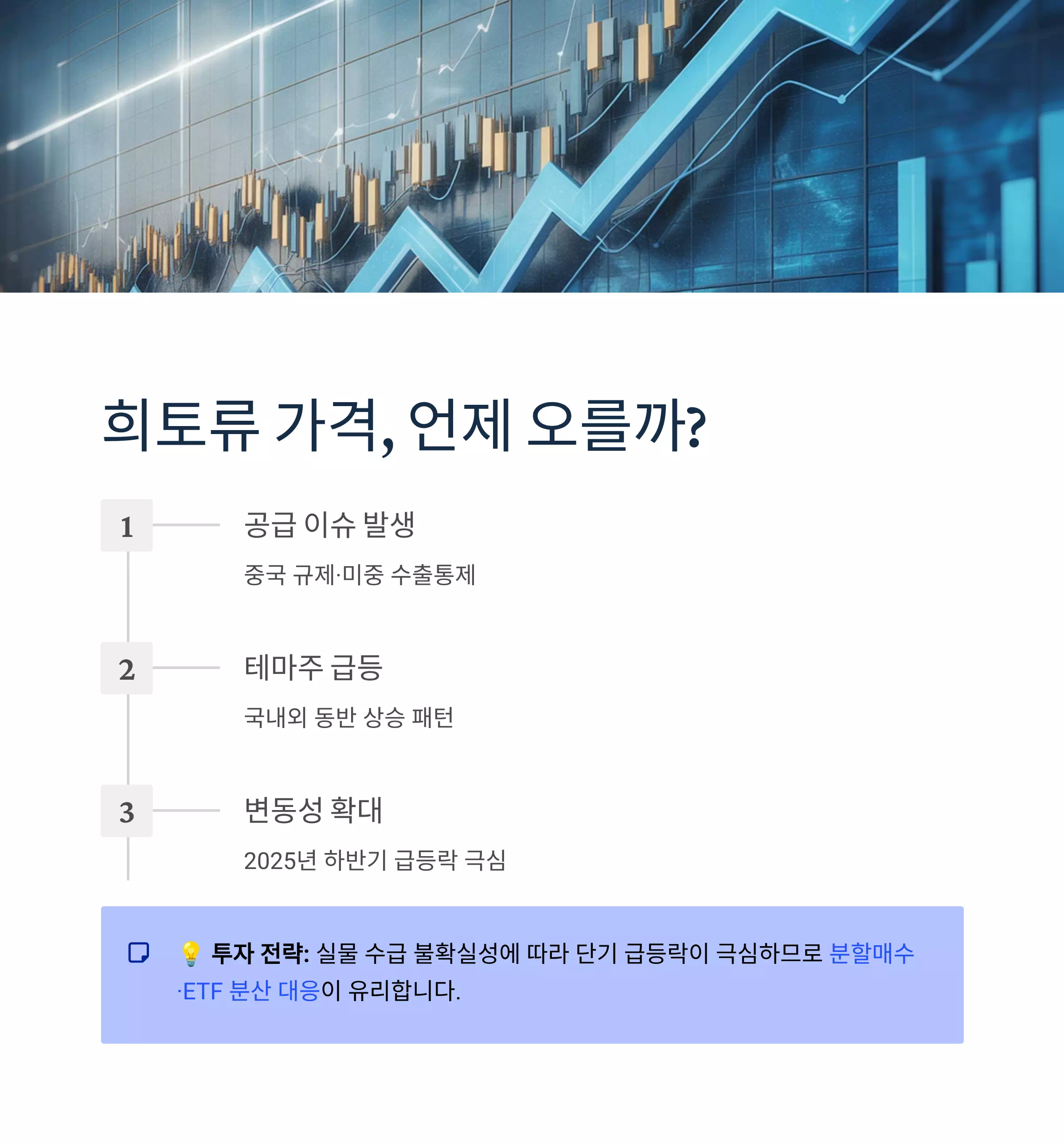 ETF 활용은 희토류·전략소재 섹터 전체의 트렌드에 분산투자할 수 있는 안전판입니다.