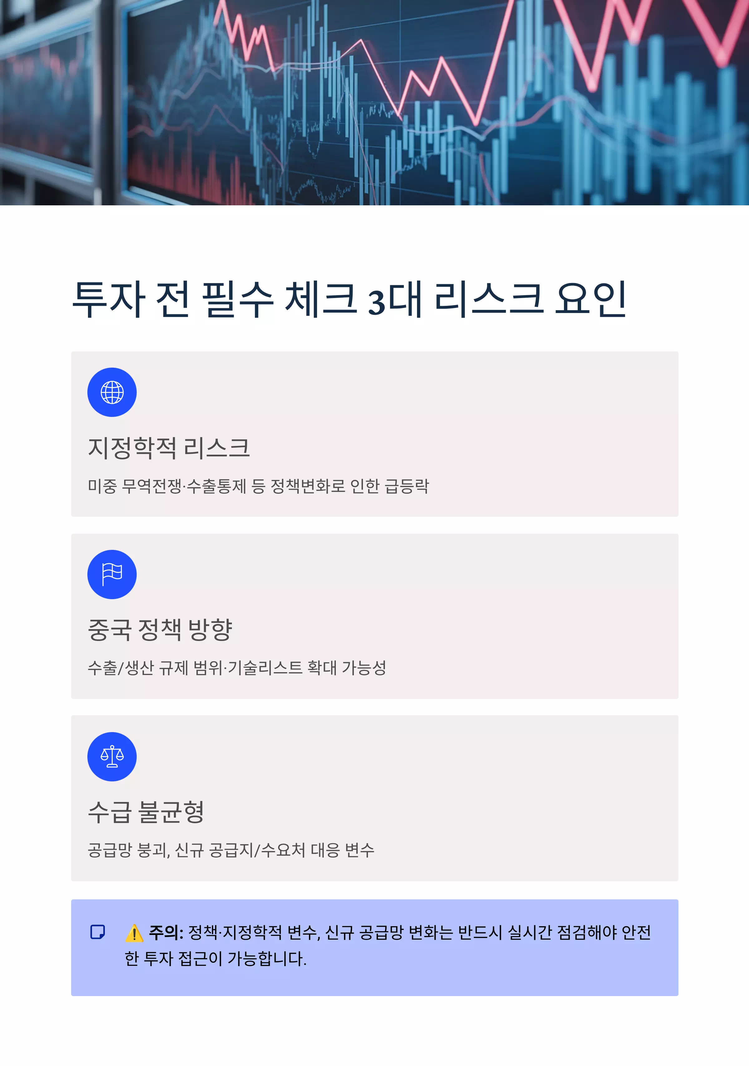 정책·지정학적 변수, 신규 공급망 변화는 반드시 실시간 점검해야 안전한 투자 접근이 가능합니다.