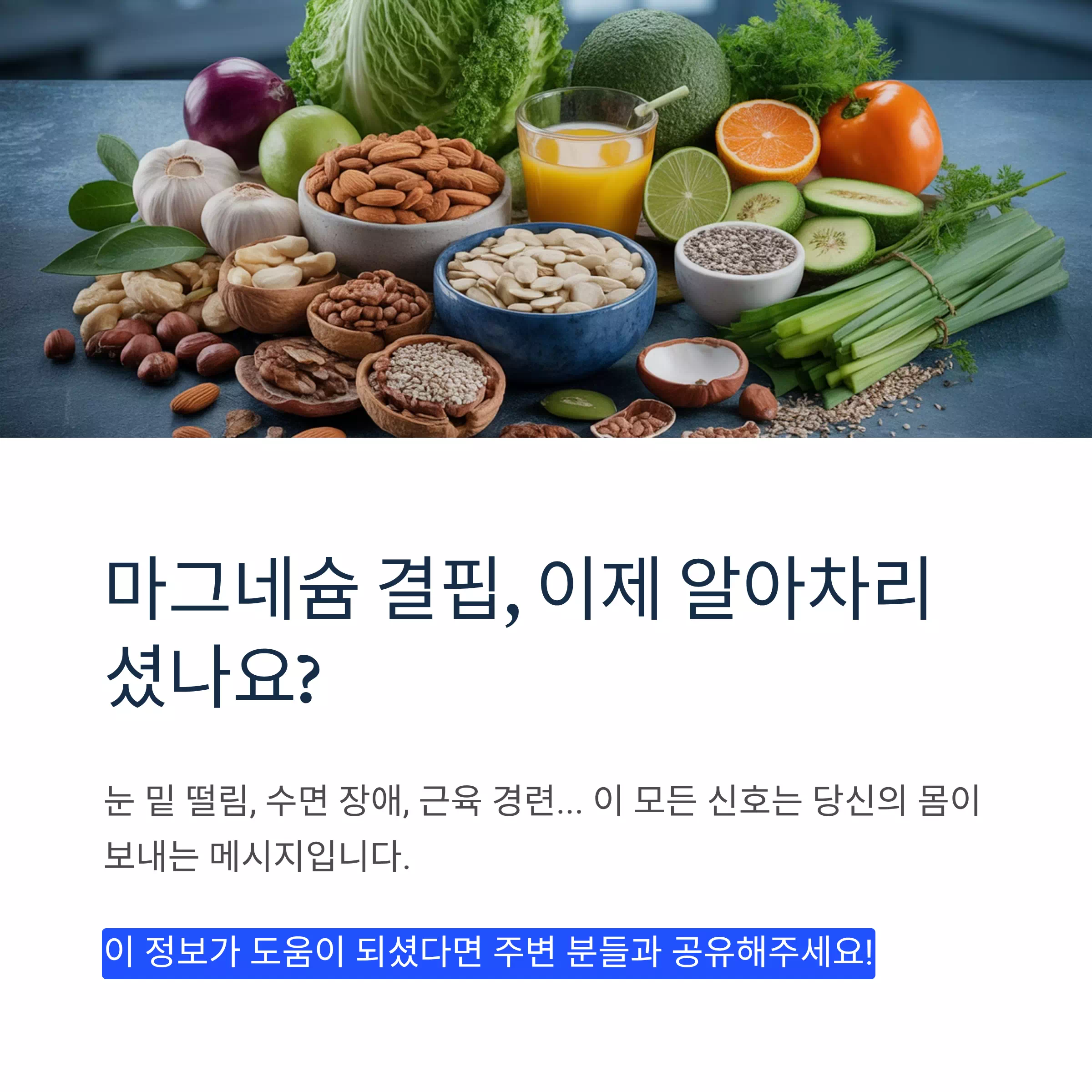 몸은 늘 신호를 보냅니다. 그런데 우리는 종종 “피곤해서 그래”, “스트레스 때문이겠지”라며 넘기죠. 하지만 이런 반복 증상은 영양 불균형의 경고일 수도 있습니다. 지속된다면 식습관과 마그네슘 섭취 상태를 함께 점검해보세요.