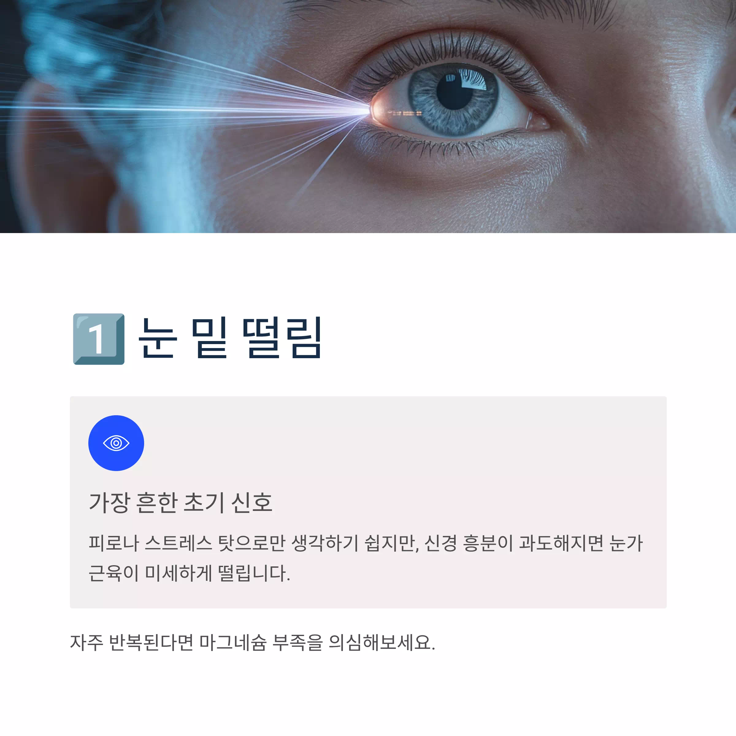 1️⃣ 눈 밑 떨림 — 단순 피로 아닐 수도