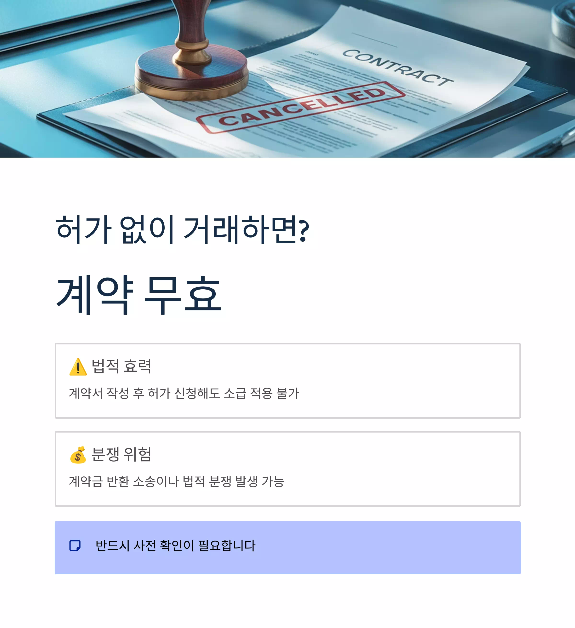 계약서 작성 후 허가를 신청하더라도 소급 적용되지 않기 때문에, 사전 허가 없이는 계약이 성립되지 않습니다.
