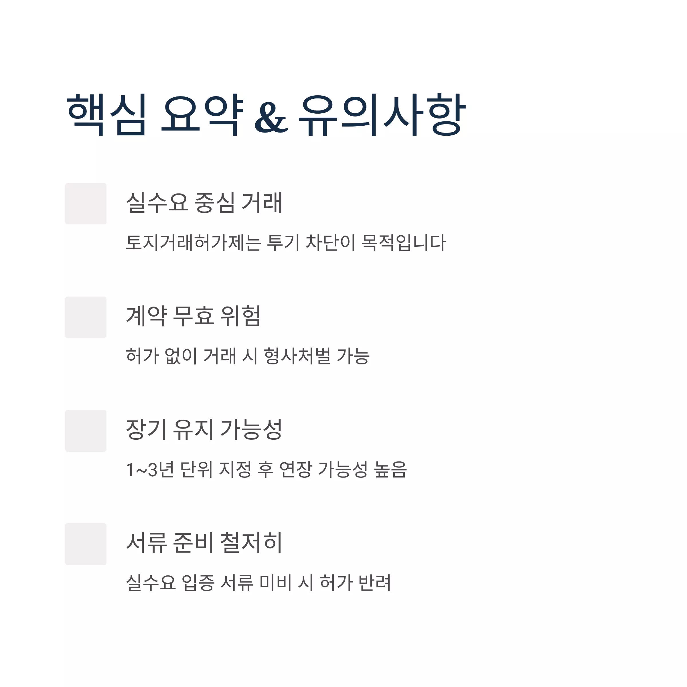 - 토지거래허가제는 실수요 중심의 거래 유도 목적