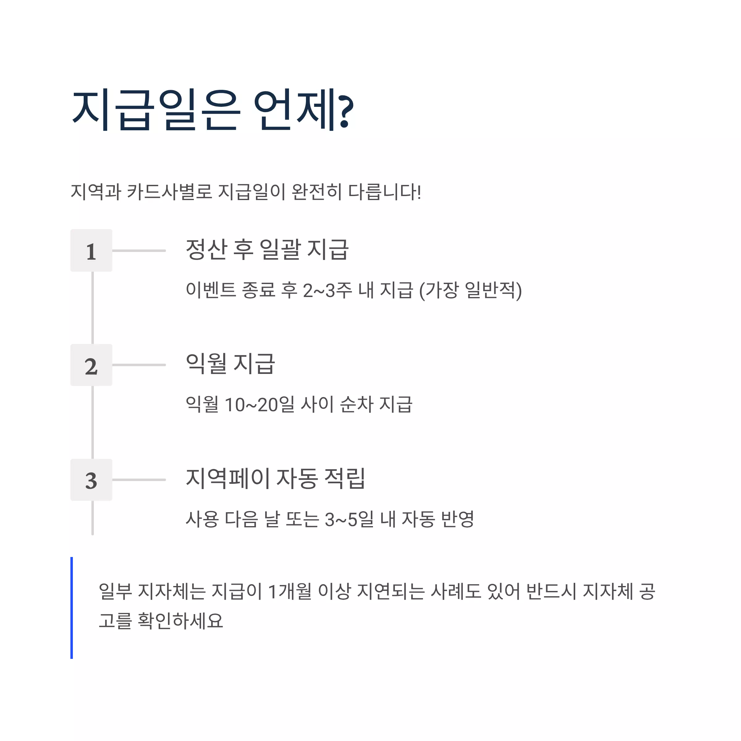 중요: 일부 지자체는 지급이 1개월 이상 지연되는 사례도 있어 반드시 “지자체 공고”를 확인해야 합니다.