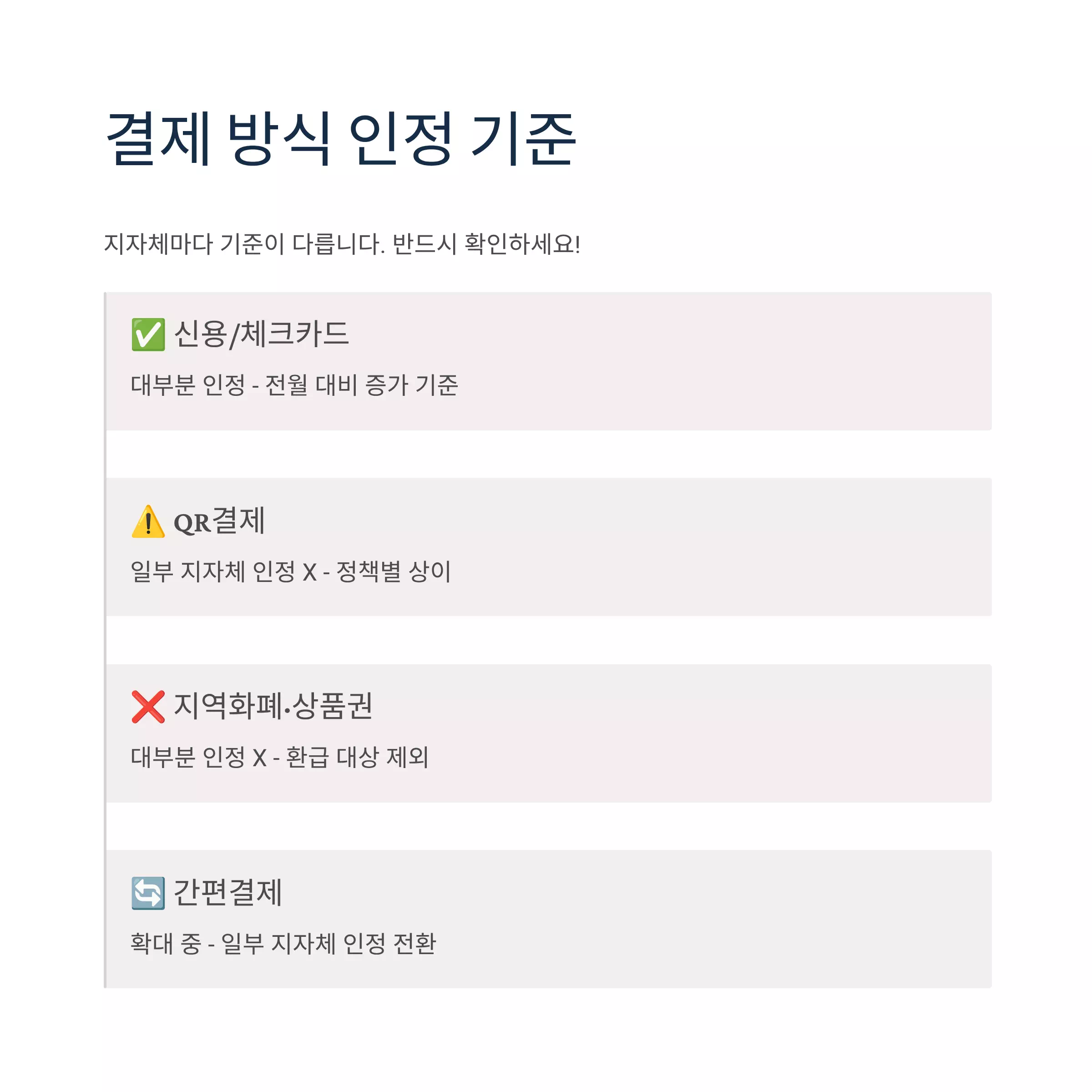 결제 방식 인정 기준 — “QR결제·지역화폐 가능?”