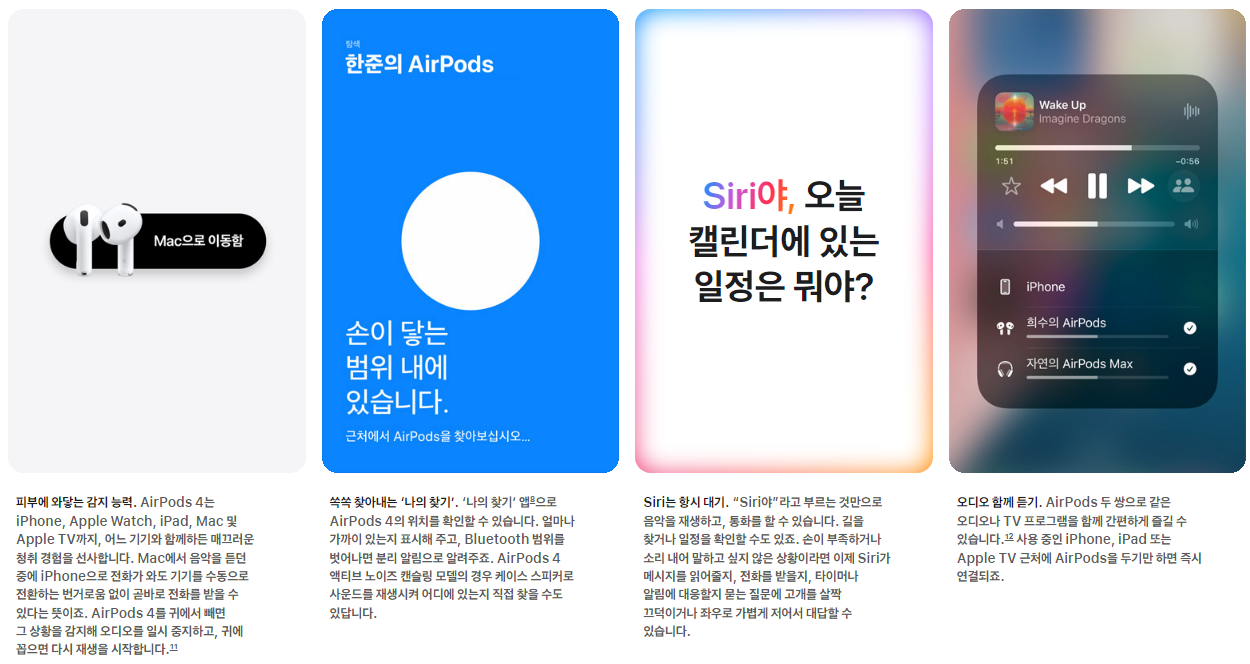 - 가격: 에어팟4는 노이즈 캔슬링이 없는 모델도 제공하여 선택의 폭이 넓어졌습니다. 예산에 맞게 선택할 수 있어요!