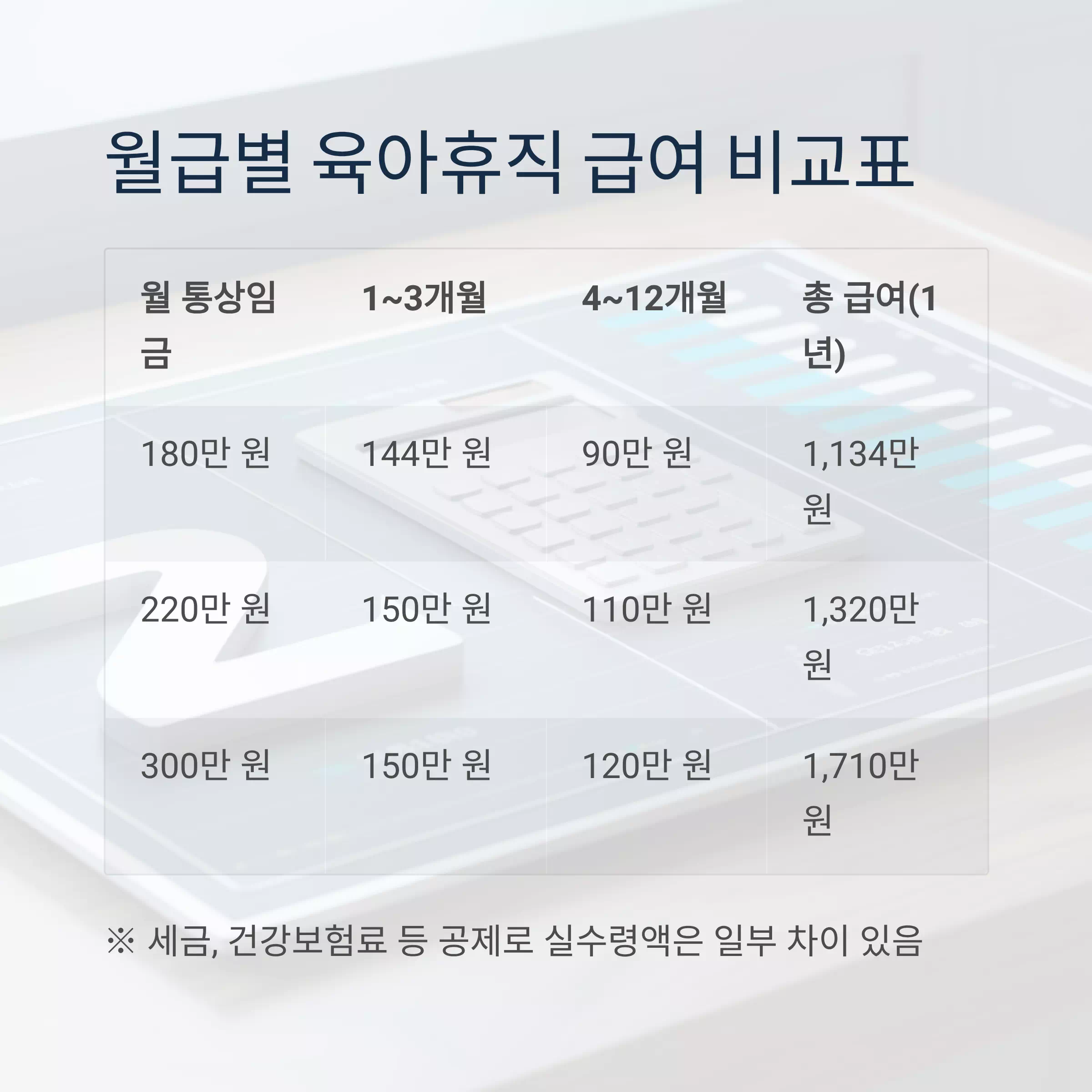 💰 월급별 육아휴직 급여 비교표