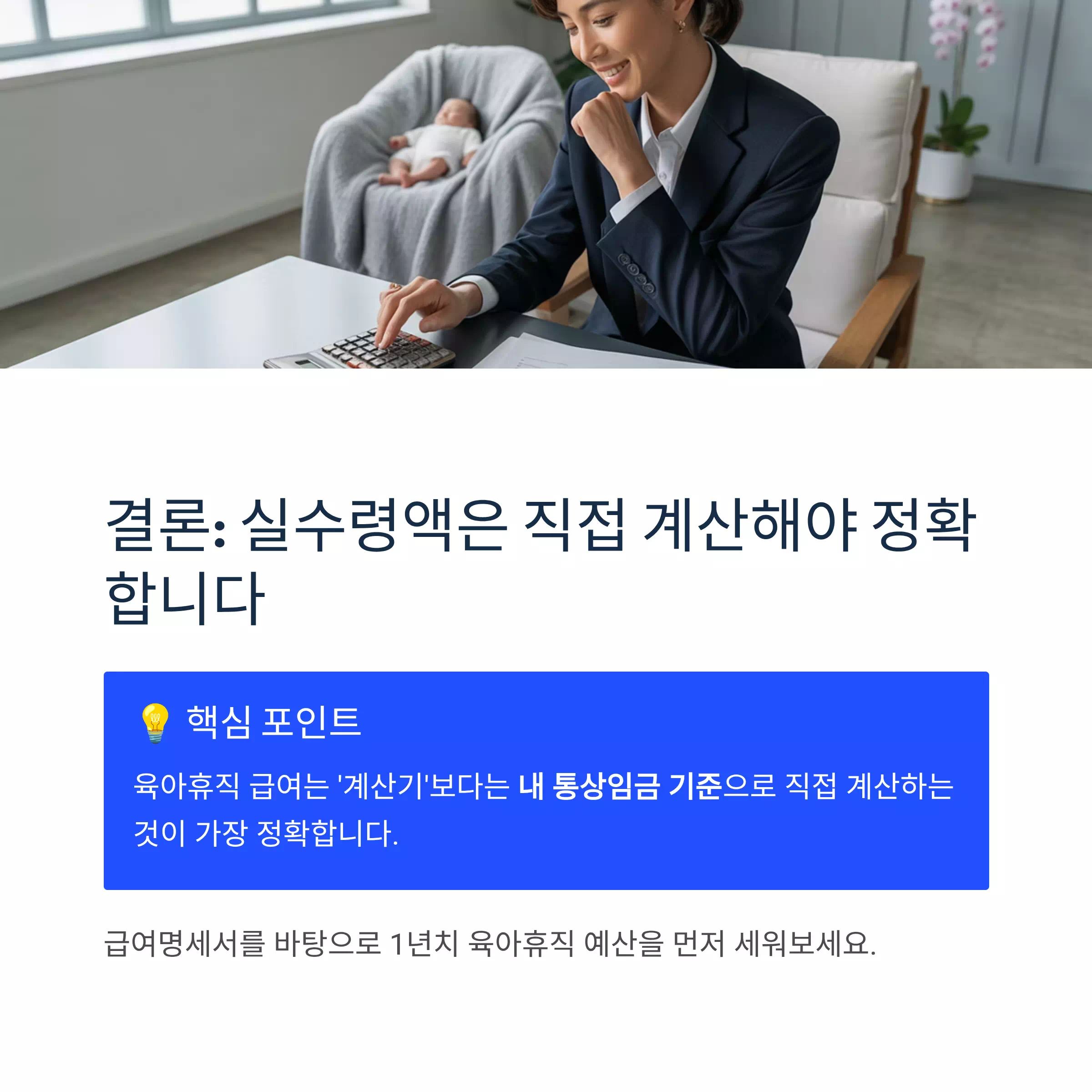 💡 육아휴직 급여는 '계산기'보다는 내 통상임금 기준으로 직접 계산하는 것이 가장 정확합니다.