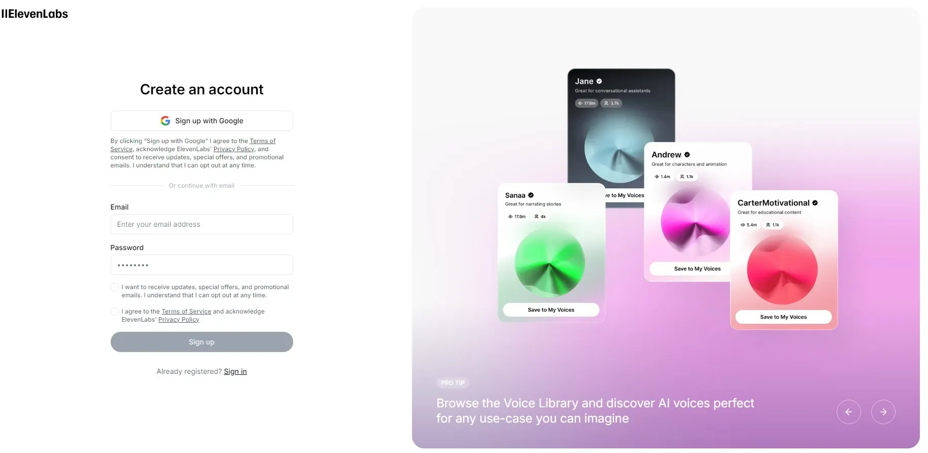 일레븐랩스는 AI 기반 음성 생성의 선두주자로, 콘텐츠 제작자와 비즈니스 사용자 모두에게 유용한 도구입니다. 지금 바로 공식 웹사이트에 방문해 직접 체험해 보세요!