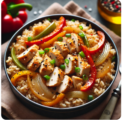 - 재료: 현미밥 1공기, 닭가슴살 100g, 양파 1/4개, 파프리카 1/2개, 간장 1큰술, 참기름 1작은술, 다진 마늘 1작은술, 소금 약간