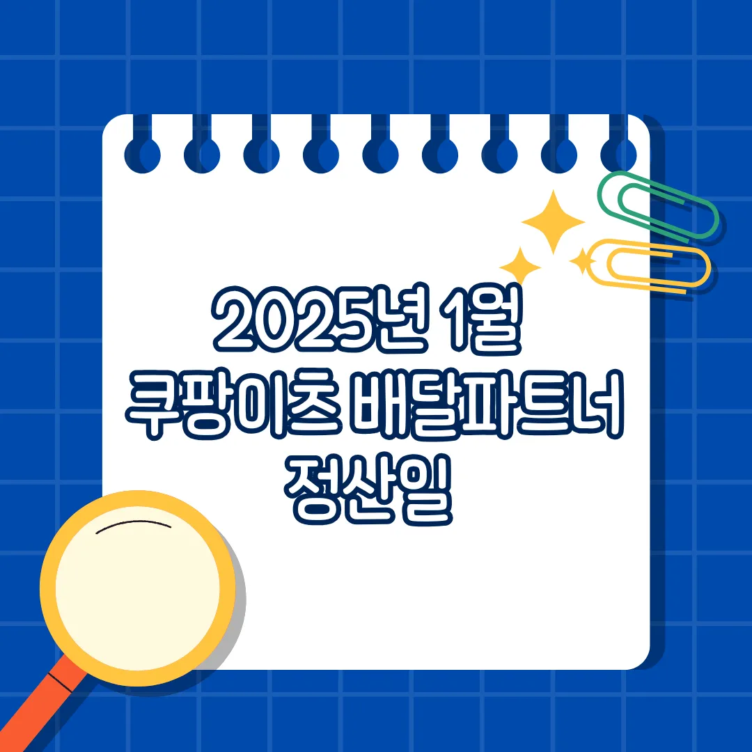 아래는 2025년 1월 쿠팡이츠 배달파트너 정산 일정입니다. 공휴일로 인해 일부 일정이 조정될 가능성이 있으니 꼭 참고하세요.