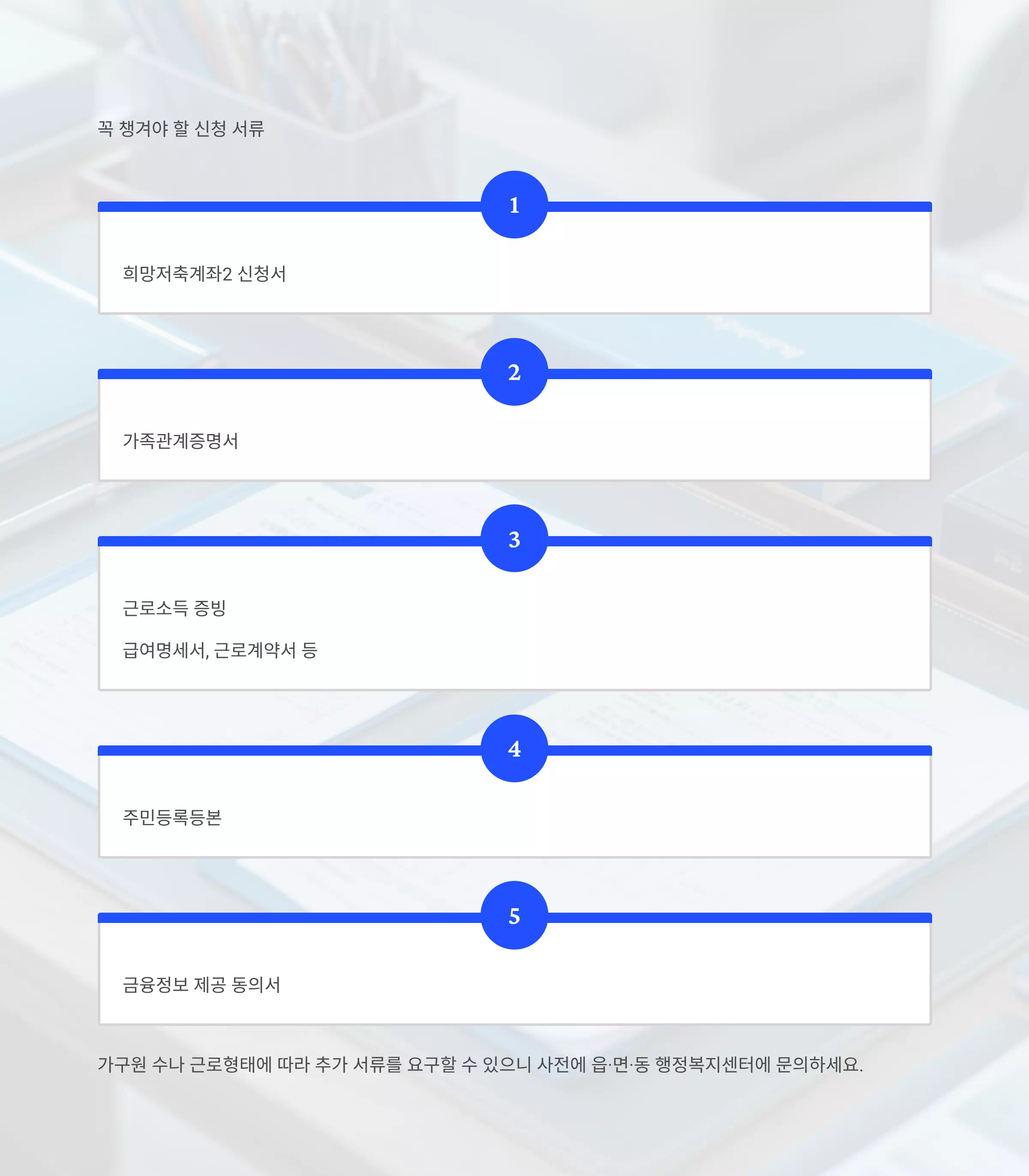 가구원 수나 근로형태에 따라 추가 서류를 요구할 수 있으니 사전에 읍·면·동 행정복지센터에 문의하세요.