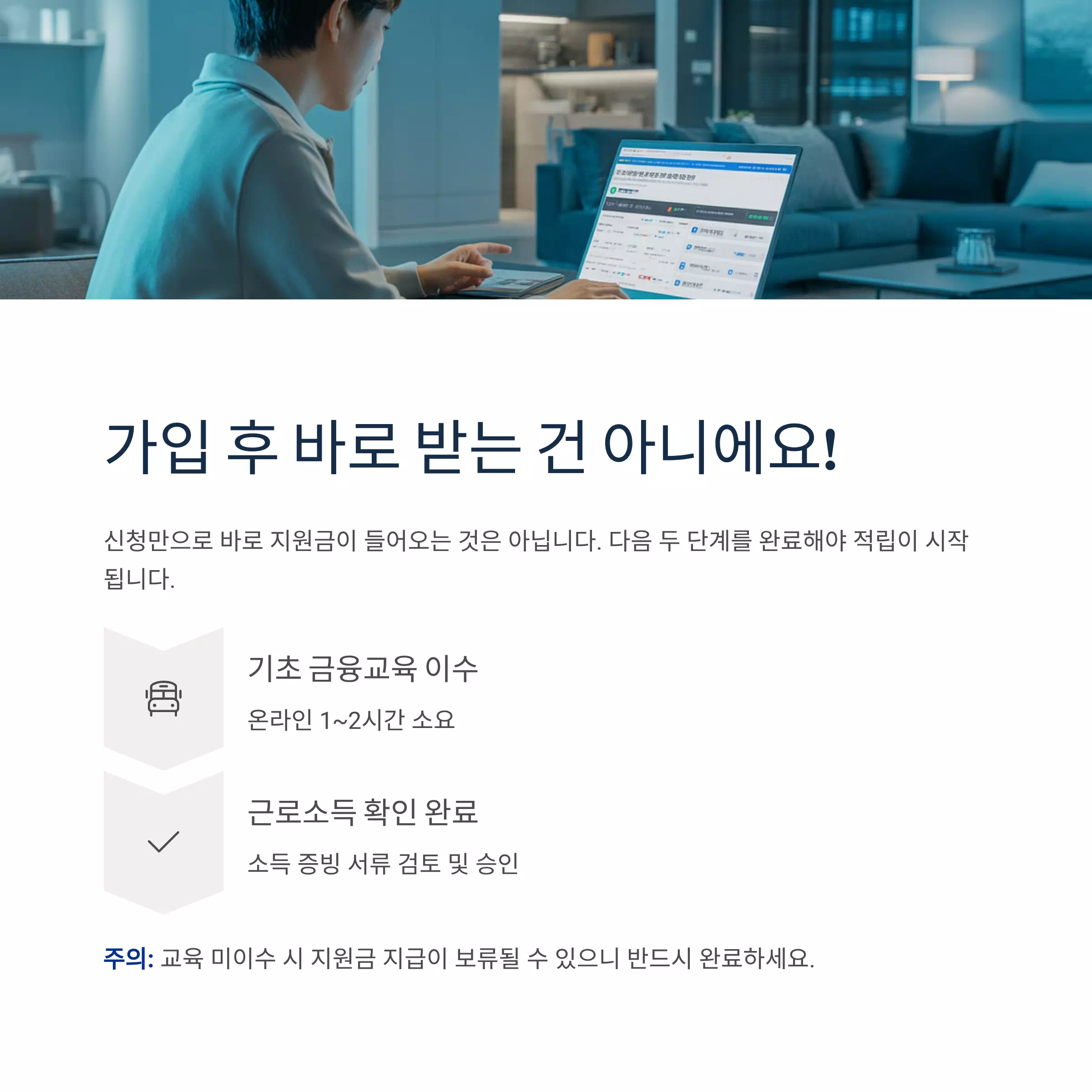 교육 미이수 시 지원금 지급이 보류될 수 있으니 주의하세요.
