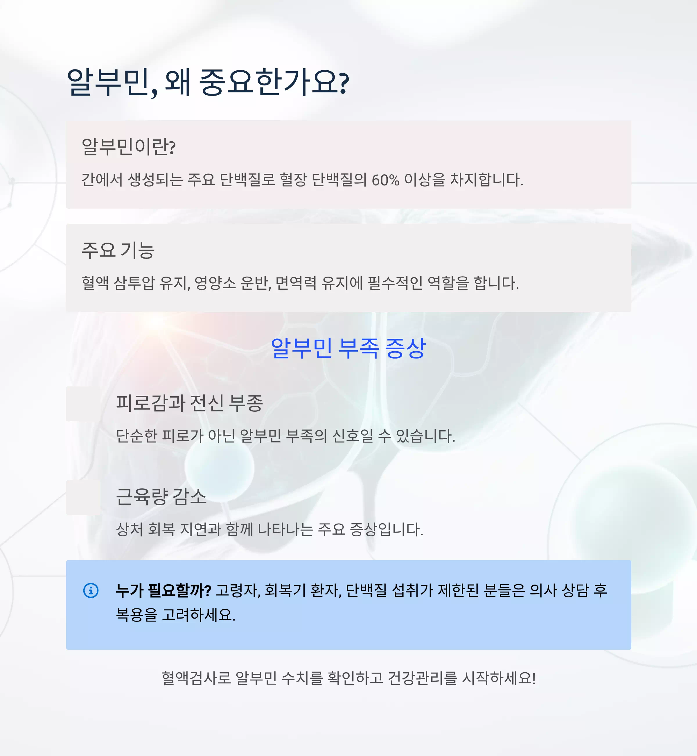 내 몸의 이상 신호가 느껴진다면 혈액검사로 알부민 수치를 체크해보세요.