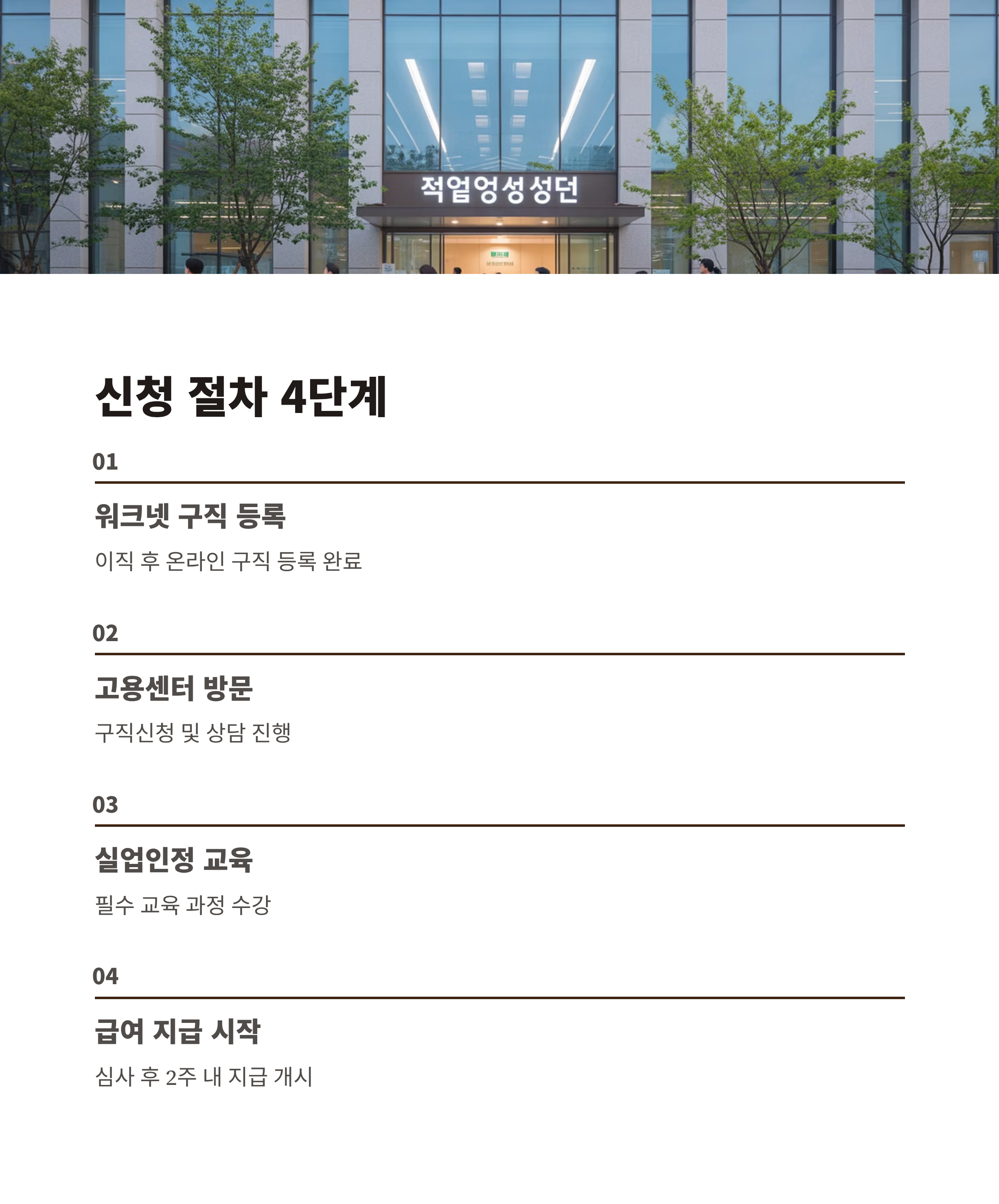 소요 기간: 보통 2주 내외, 이후 구직활동 실적 보고 필요