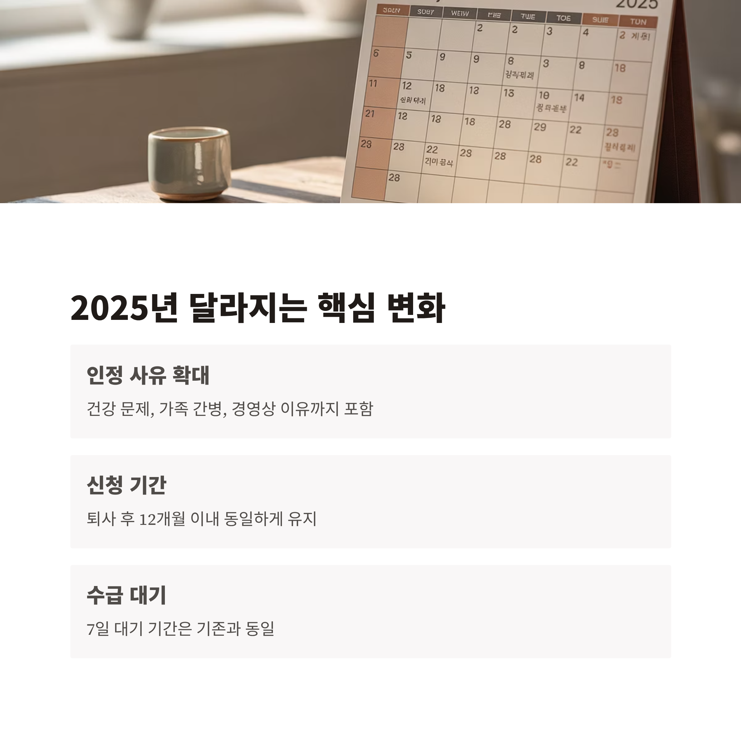 | 수급 대기 기간 | 7일 | 동일 |