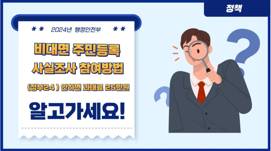 안녕하세요 여러분! 요즘 바쁜 일상 속에서 각종 행정 업무를 처리하기 어려우시죠? 특히 주민등록 사실조사는 꼭 해야 하는데, 직접 주민센터에 방문하는 건 번거로울 수 있어요. 그래서 오늘은 2024 주민등록 비대면 사실조사에 대해 쉽게 설명해드리려고 합니다. 과태료도 피하고, 집에서 편하게 사실조사를 완료해보세요!