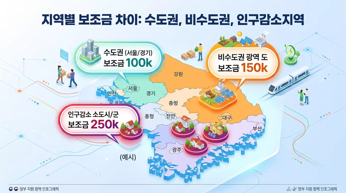• 인구감소지역 지정 지자체: 20~25만 원