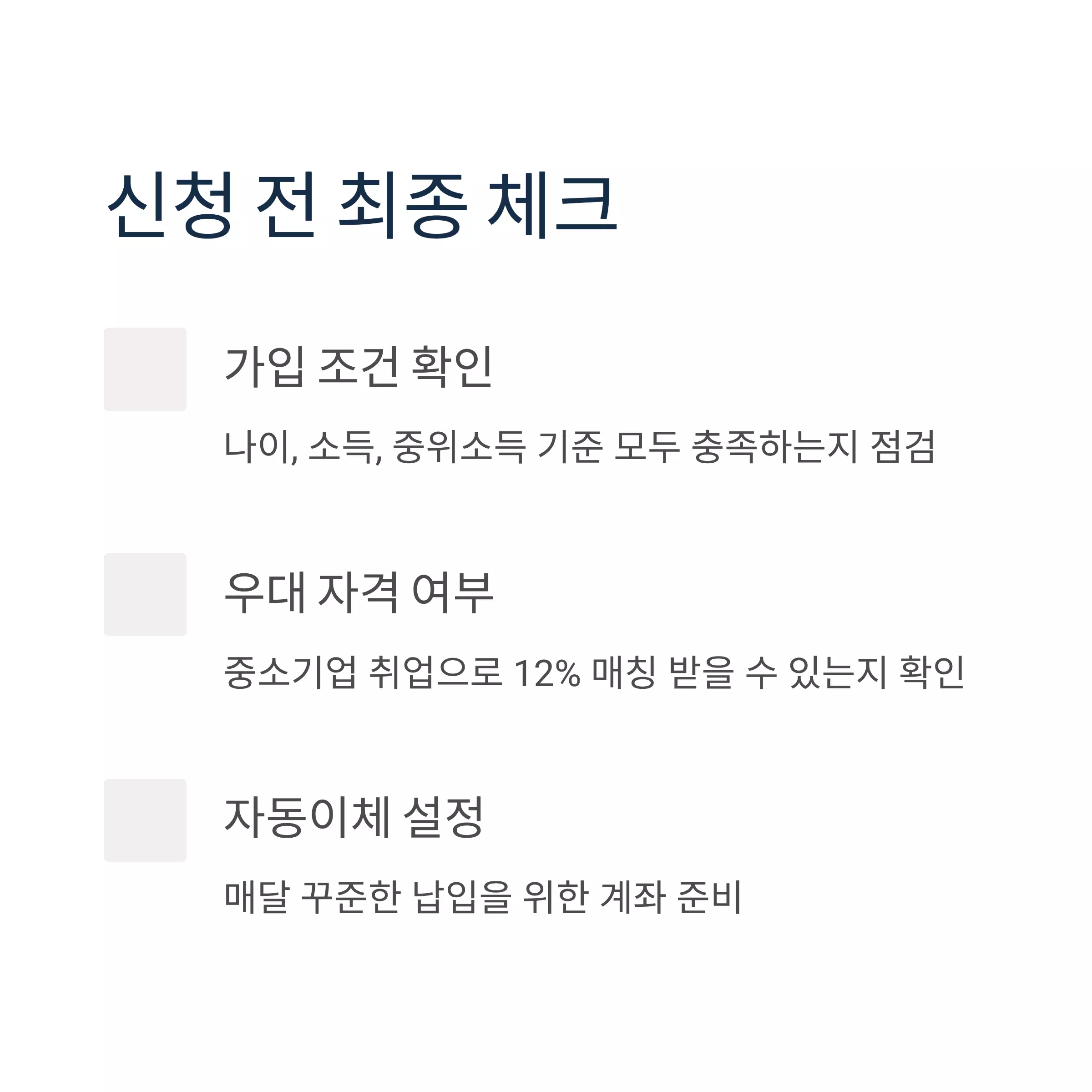 → 신청 전 납입 계획과 고용 조건을 꼭 체크!
