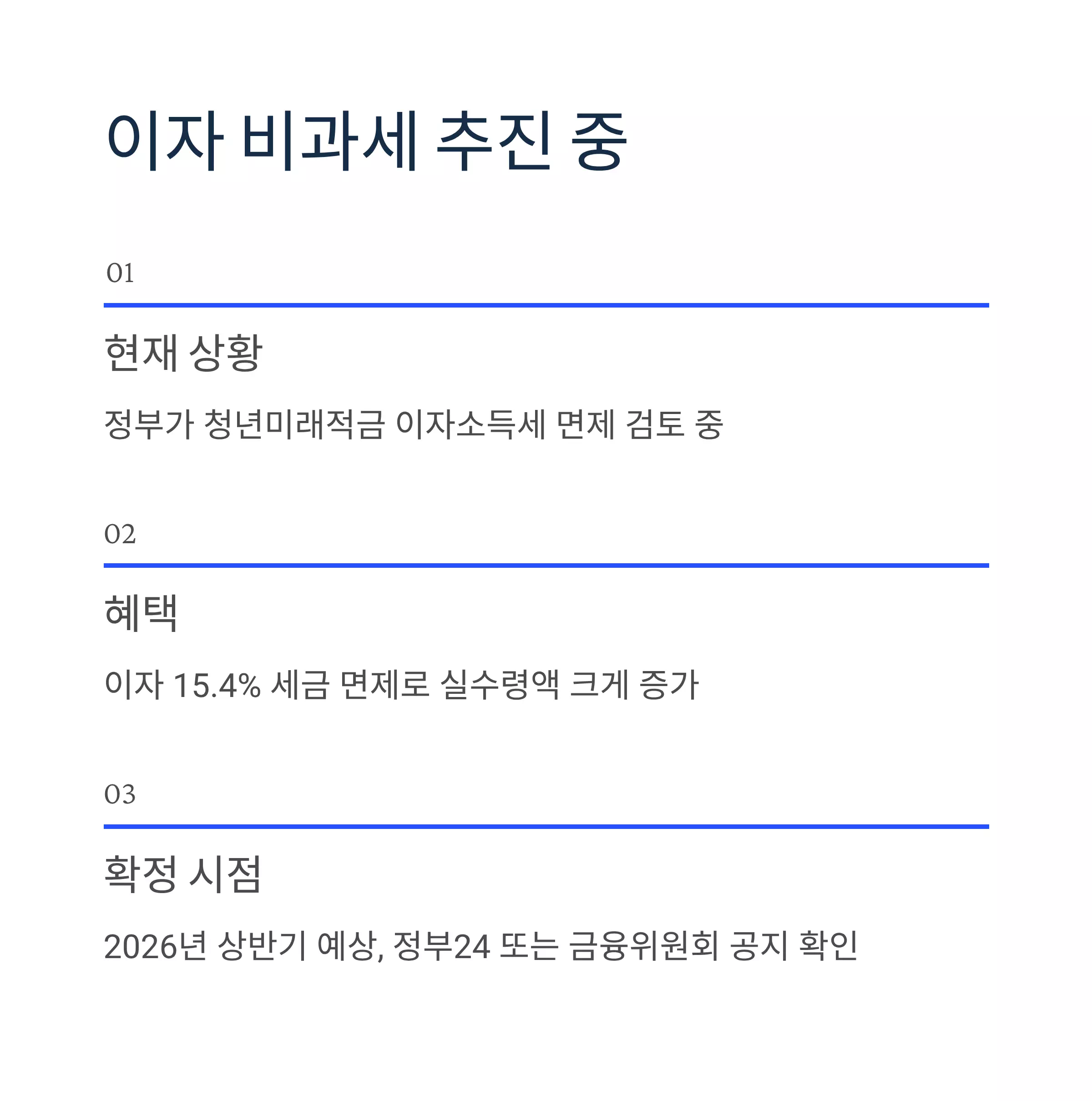정책이 확정되면 이자 15.4% 세금이 면제되어 실수령액이 크게 늘어날 수 있어요.