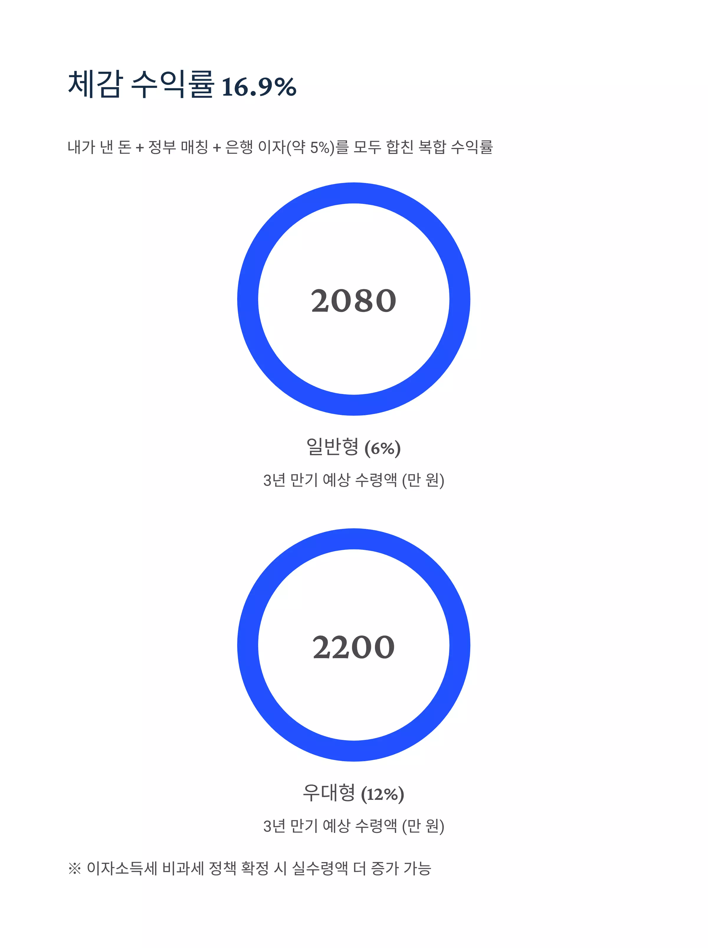※ 이자소득세 비과세 정책이 확정될 경우 실수령액은 더 증가할 수 있습니다.
