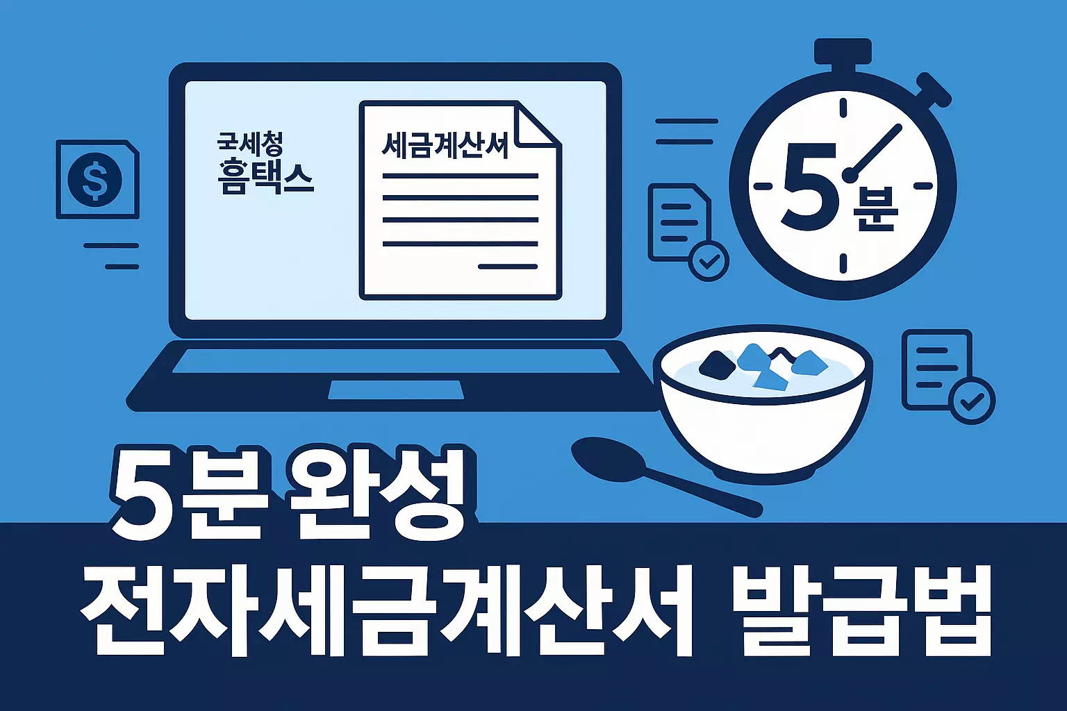 국세청 홈택스를 이용하면 누구나 5분 이내에 전자세금계산서를 쉽게 발급할 수 있습니다.