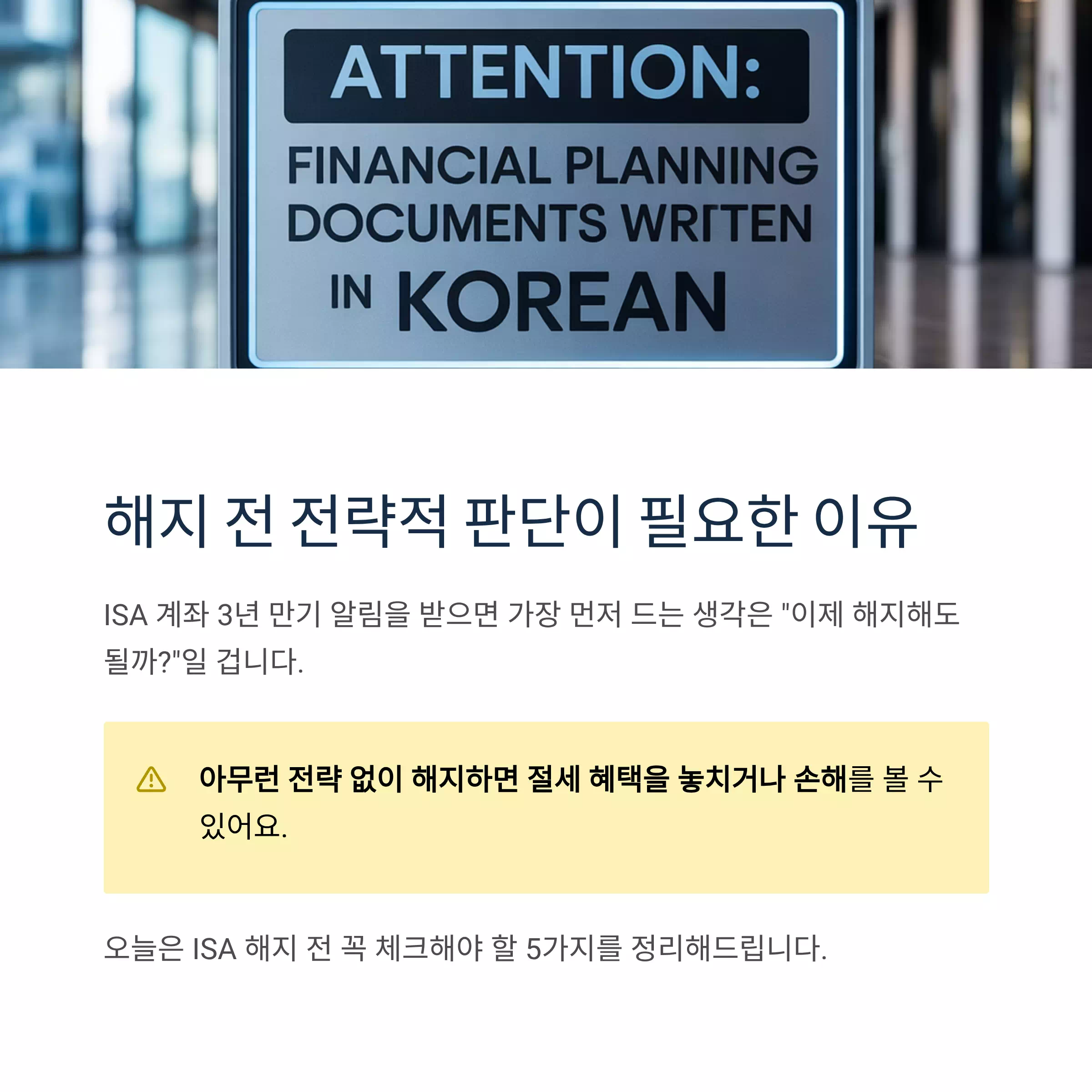오늘은 ISA 해지 전 꼭 체크해야 할 5가지를 정리해드립니다.