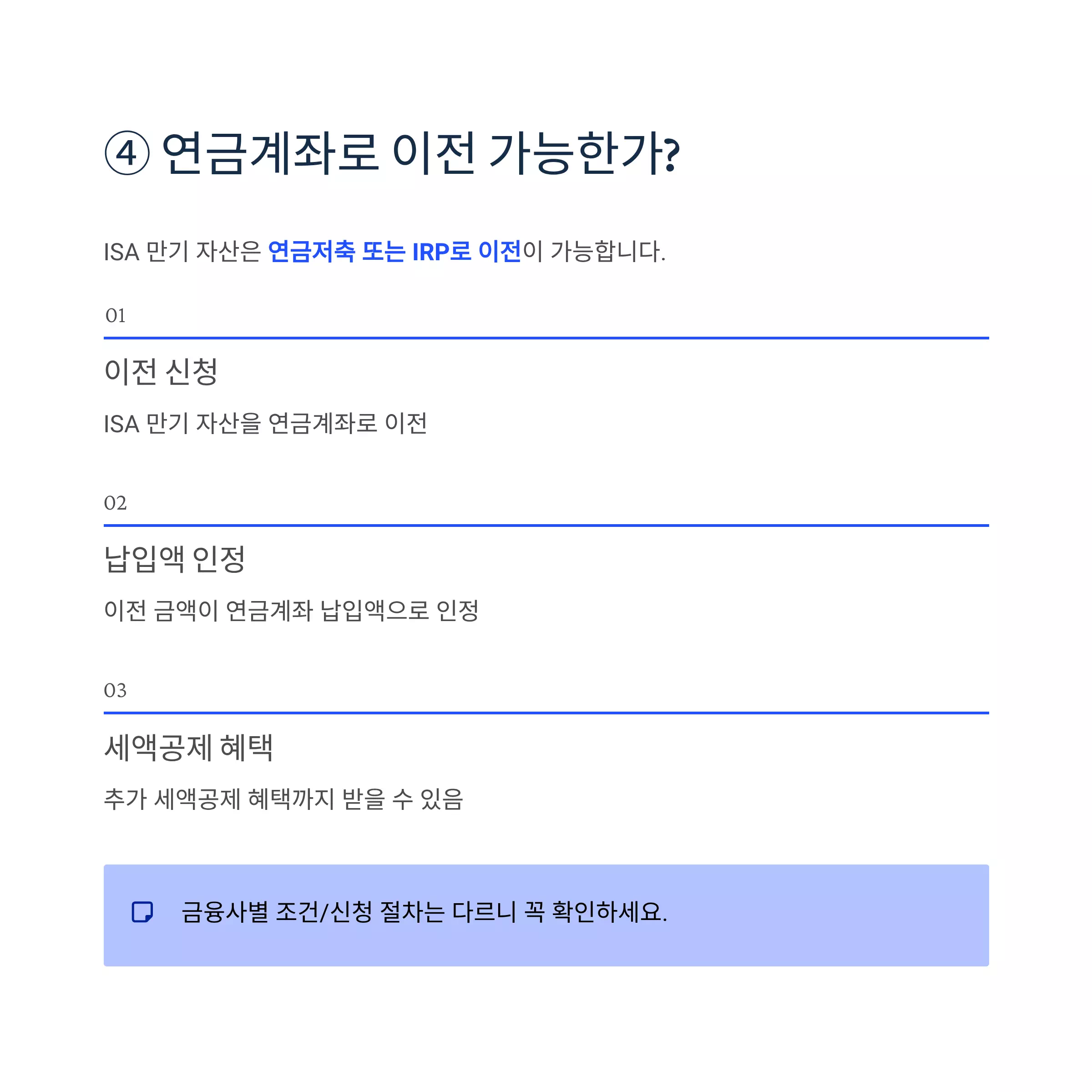 | 연금계좌 이전 | 세액공제 + 노후자산 구성 | 장기 투자자 |